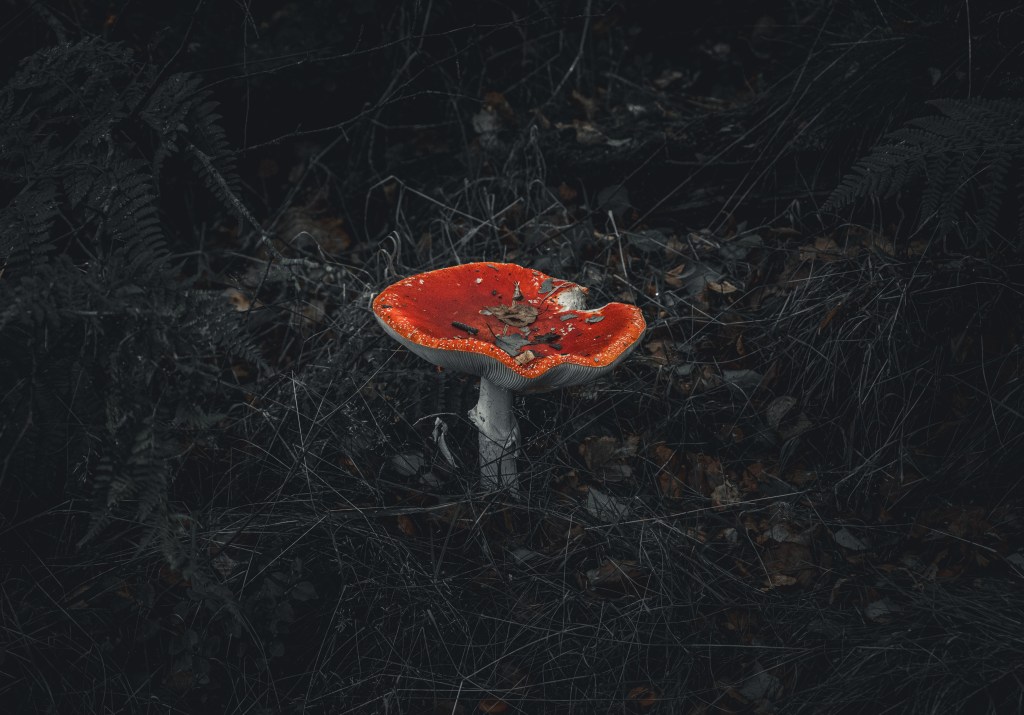I wandered through the woods, fueled with wonder and a joyfulness I hadn’t felt in too long. I marvelled at the paper-like gills, the tiny bite marks (and the not so tiny) and how red the red of their caps could be. I found toadstool parts strewn around the woods like limbs, and some overturned and moulding, their journey back into the earth already begun.
